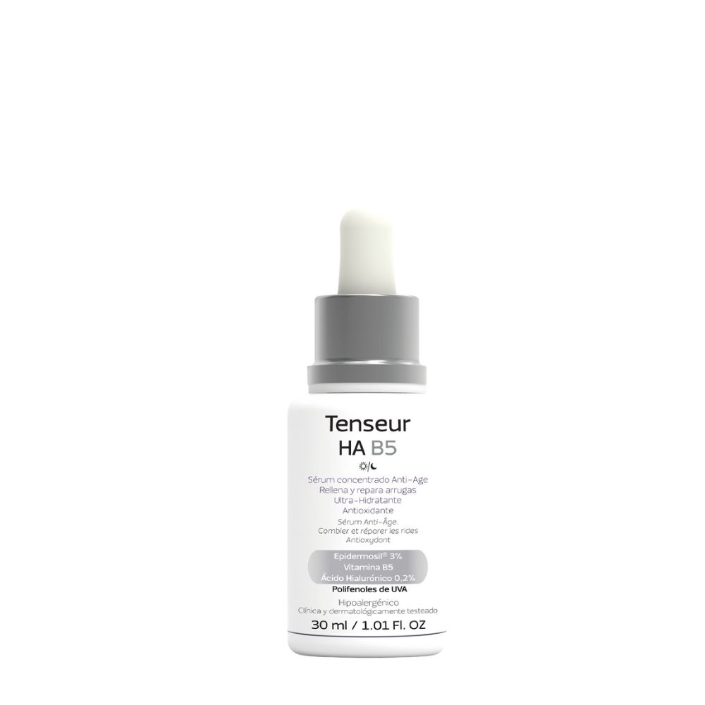 | Uso | "Aplicar Tenseur HA B5 Serúm sobre la piel limpia y seca del rostro, cuello y escote. Colocar 3 a 5 gotas sobre la piel realizando suaves masajes circulares con la yema de los dedos.Para alcanzar efectividad máxima aplicar dos veces al día (mañana y noche).Se recomienda utilizar combinado con Tenseur HA B5 Lifting o Tenseur HA B5 Volumen para potenciar el tratamiento anti-edad." |